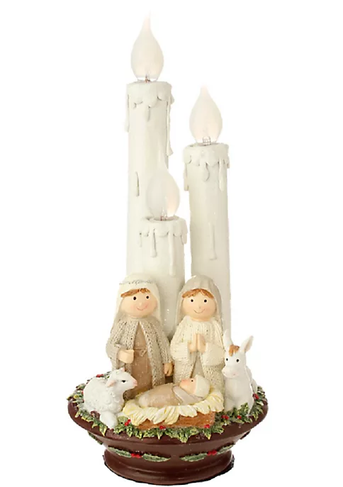 Exude the art of holiday decoration with a holy touch by incorporating this Christmas tabletop decor! This piece displays an artistic construction of a nativity family and a set of candles loaded with a lighting function. Adorn your table with this spiritual accent and start your festival celebrations.