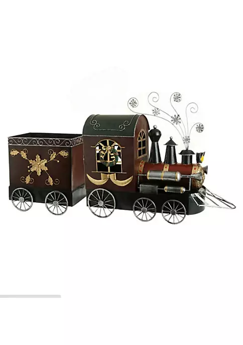 Choo-Choo! Get ready for a fun-filled journey! Seize this eye-catchy Christmas tabletop decor that comprises an old fashioned train embellished with scrolling borders wreath and snowflake smoke coming out of one of the three smokestacks in the front of the train. Incorporating this charming accent will instantly spice up your holiday celebration!