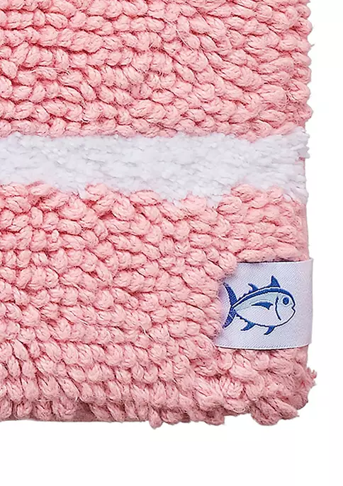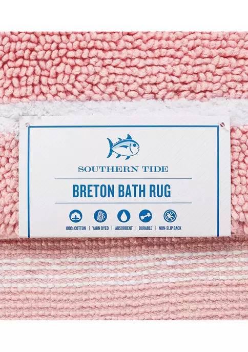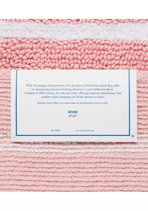 With its preppy stripe pattern, the Southern Tide Breton Bath Rug adds an energizing and eye-catching element to your bathroom décor. Crafted of 100% cotton, it’s soft and lofty, offering superior absorbency and comfort when stepping out of the shower or bath. Inspired by some of the most beautiful elements in the world, the Southern Tide Breton Bath Rug offers craftsmanship, clean lines, and fine quality. Available in multiple color combinations, including Aqua/White, Geranium Pink/White, Harpoon Gray/White, and Cobalt Blue/White, it is an attractive accent and complements any interior theme. Coordinates with Southern Tide Breton bath towel and shower curtain. With Southern Tide, the South is more than just a location, it’s a state of mind. The brand is all about the classic American lifestyle and it always brings a piece of the South wherever it goes. The premier Southern label appeals to those with an adventurous spirit, an affection for the coast, and an appreciation for a classic design. Machine wash cold separately, gentle cycle. Do not bleach. Tumble dry low.
